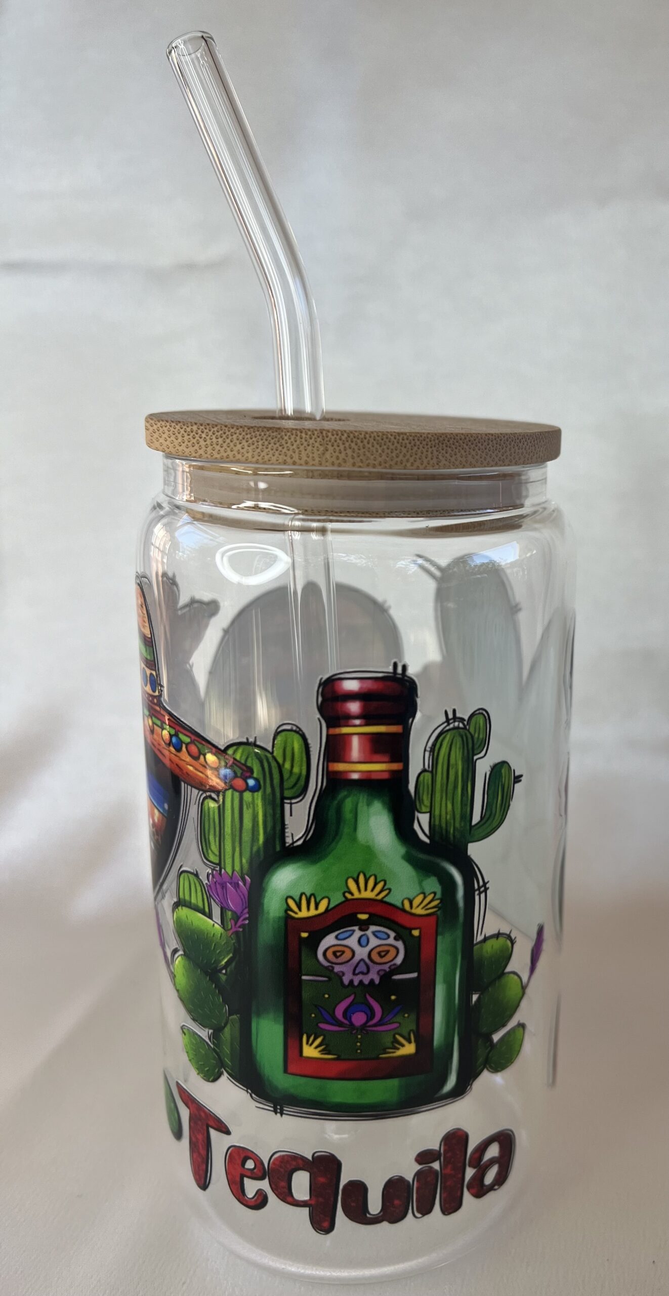 INCLUDED:Bamboo lid and glass straw