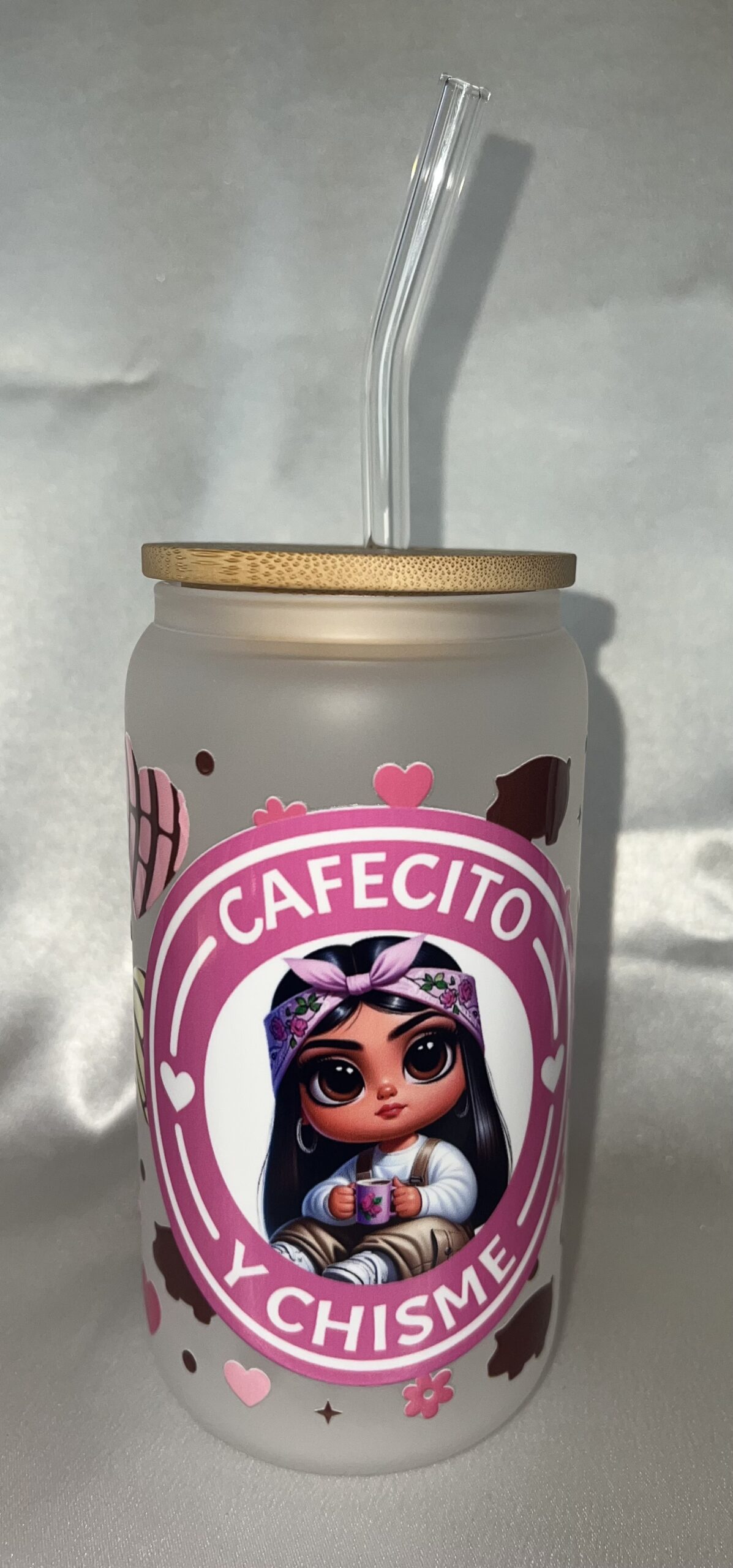 CAFECITO Y CHISME FROSTED CAN GLASS