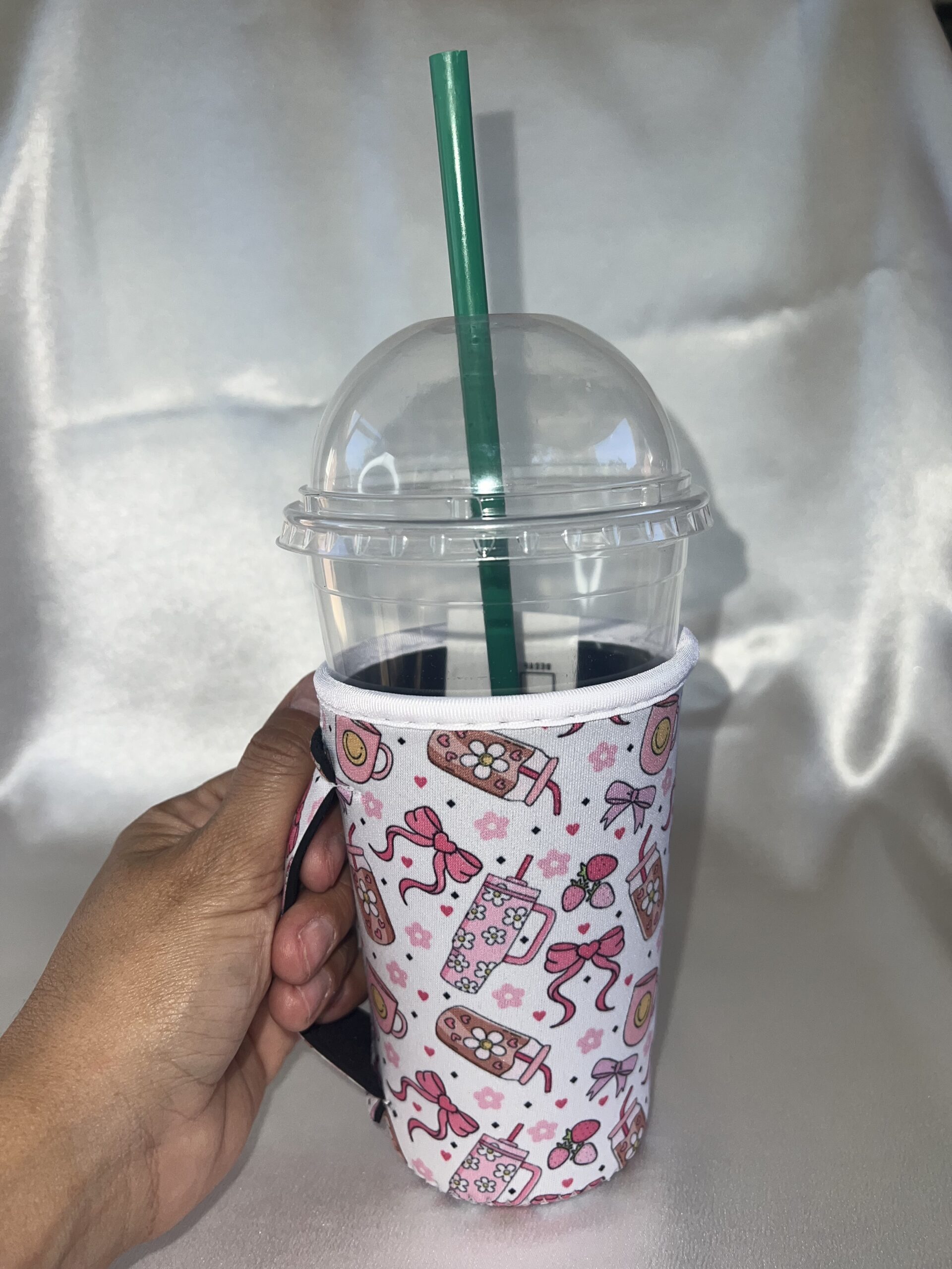 CUP SLEVEE WITH BOW AND COFFE CUP.
