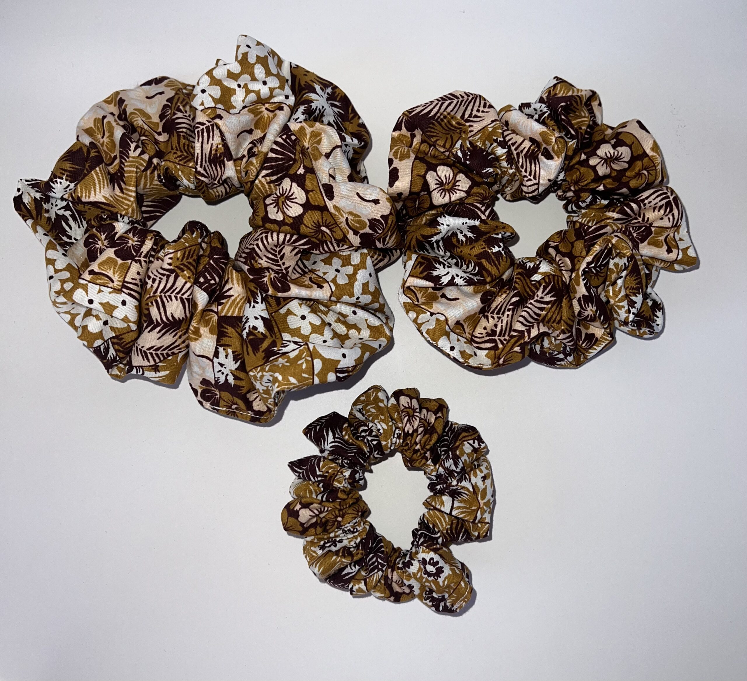 SCRUNCHIE WITH WHITE AND BROWN FLOWER