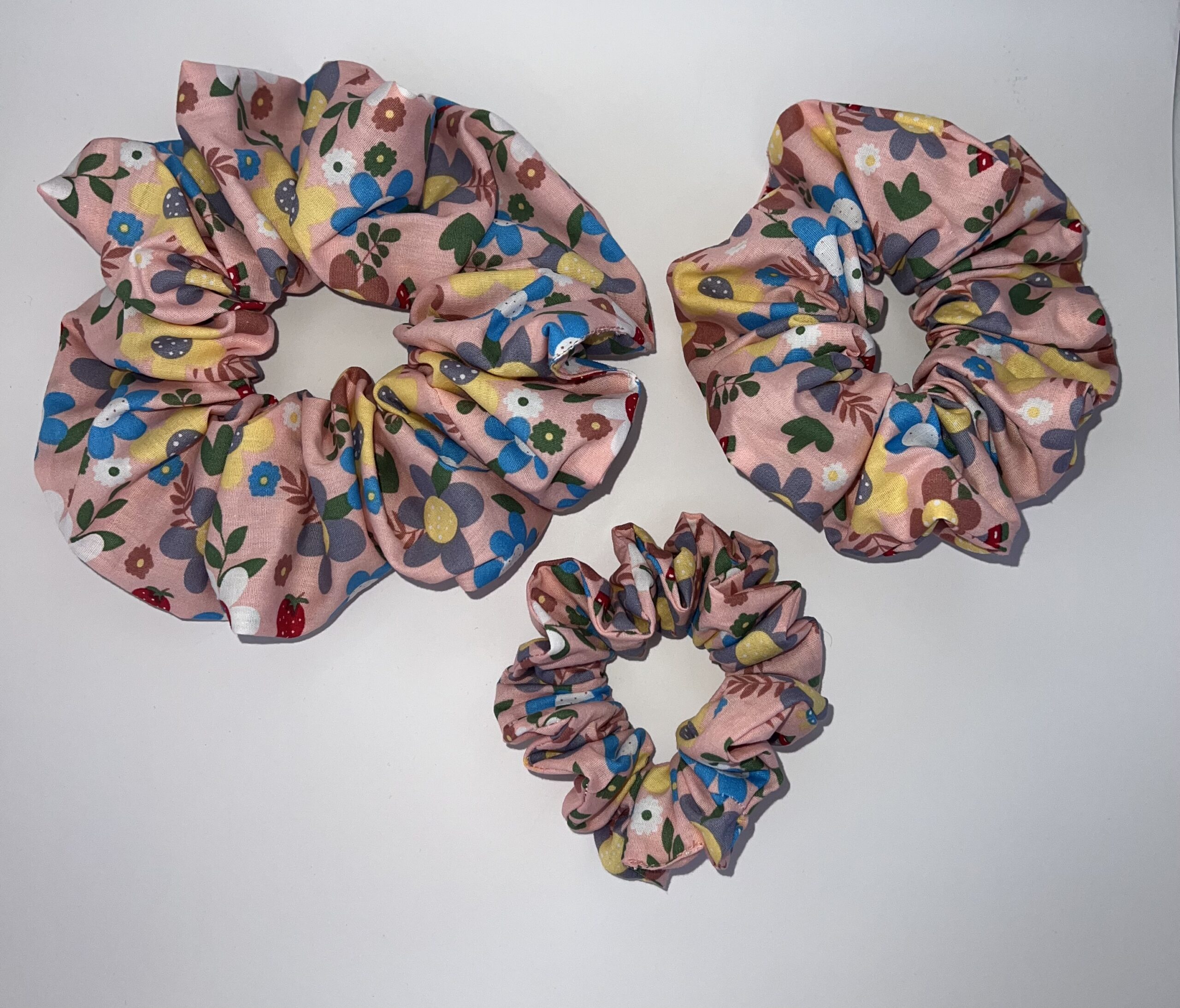 LIGHT PINK WITH BLUE,WHITE AND LIGHT PURPPLE FLOWERS